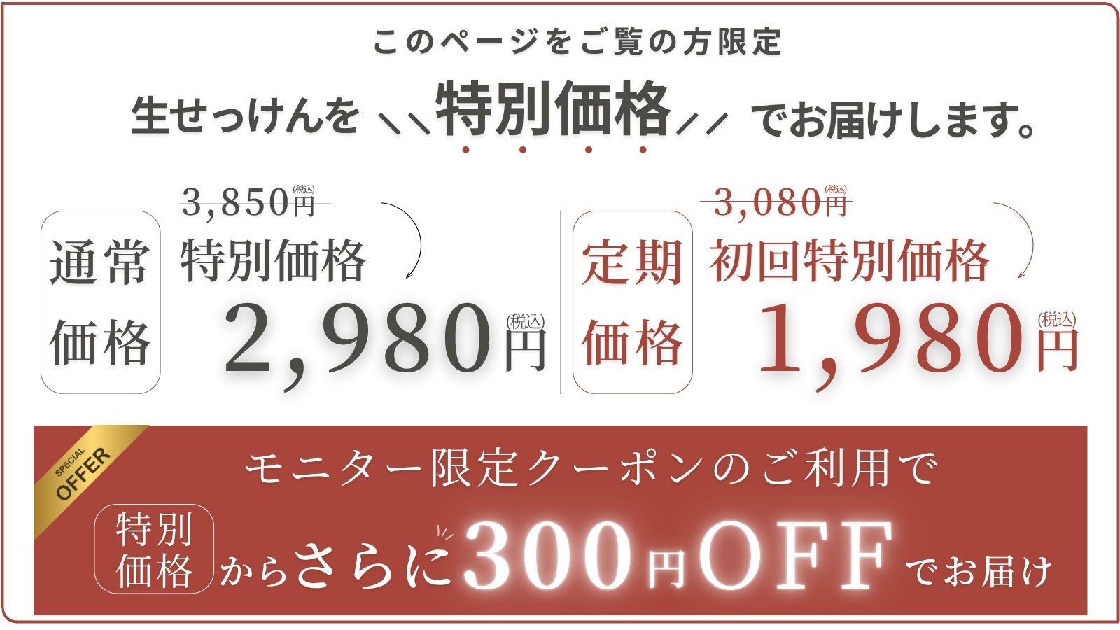特別価格の生せっけんがクーポンご利用でさらにお得になります。