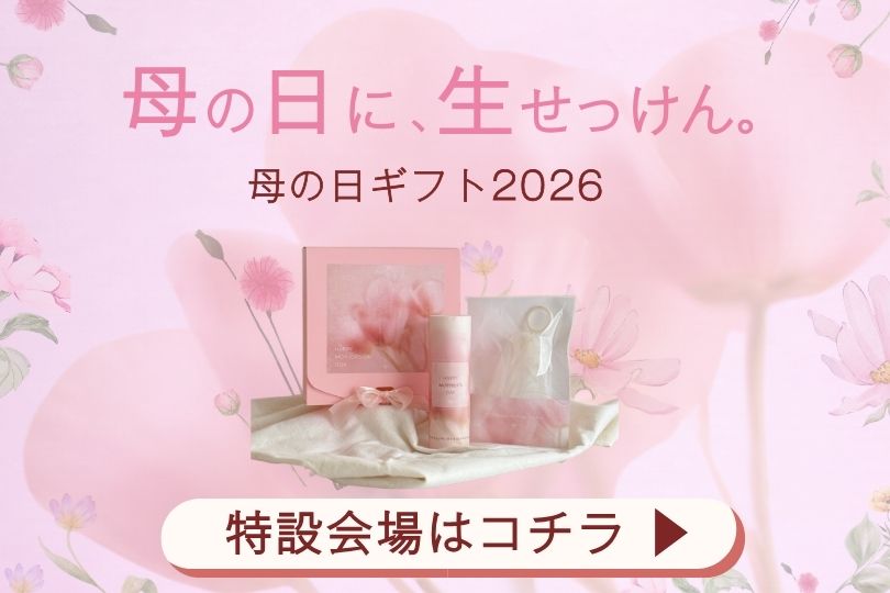 母の日の特別な贈りものとして。やさしいピンクのギフトボックスに包んでお届けします。「ありがとう」の想いをのせて、花々をあしらったボックスは、まるで花束を手渡すような、やわらかな華やかさ。開けるその瞬間まで、心ほどけるひとときをお届けします。