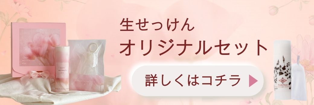 ラッピングの箱を開けたあとも、花束を受け取ったような華やかさが続くように。生せっけんは、母の日限定デザインのスリーブ(紙筒) に身を包んでお届けします。さらに、オリジナル泡立てネットも 母の日デザイン に。「ありがとう」の想いをのせて、お届けします。