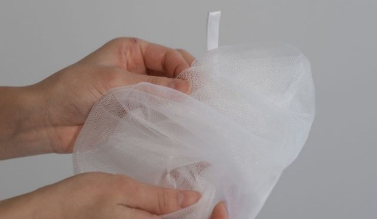 プレミアム泡立てネットは4重でネットを重ね、軽く擦るだけで簡単に濃密泡ができるように。