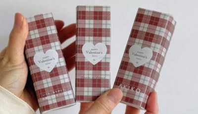 バレンタインデザインのスリーブには、大切な方の "お名前" または "メッセージ" を印字してお届けさせていただきます。メッセージは30字以内となりますが、普段はなかなか言えない「ありがとう」や温かい想いを、生せっけんと一緒に届けませんか?